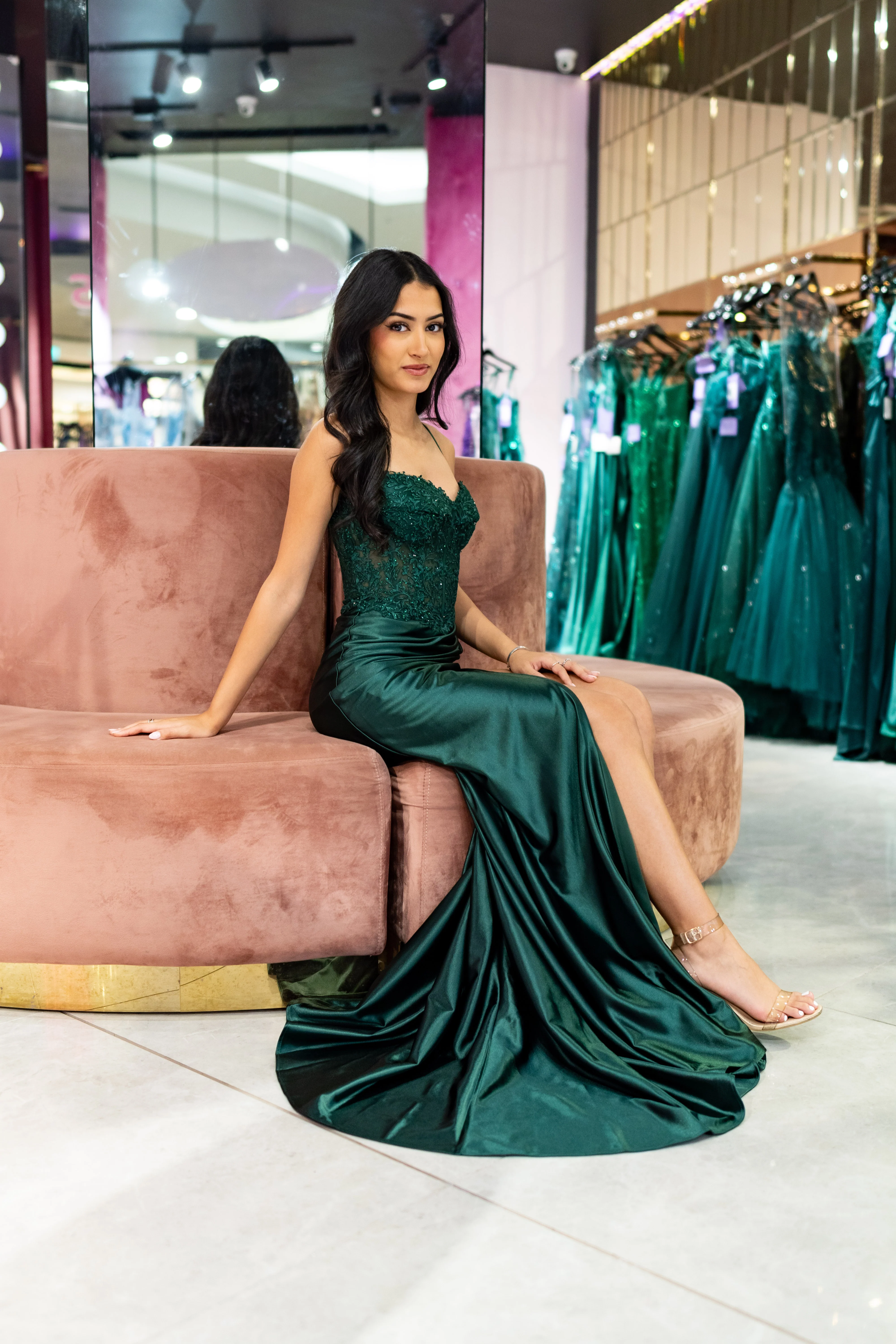 Look glamorous in this lace bodice corset gown! This fitted silhouette is perfect for prom or any special occasion. A boned bodice, embellished by elegant lace and stretch satin skirt give you the ultimate support and bring the glamour to your look. Enjoy gathered details on the waist, that will hug your body in all the right places. Show off those amazing legs with a leg slit to finish off the look. This beautiful gown will have all eyes on you!
